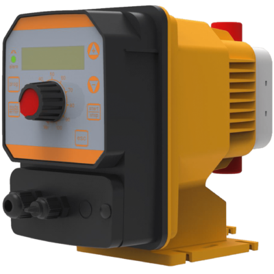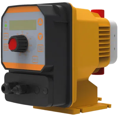 Pompă de dozare electromagnetică digitală, montată pe bază orizontală, cu reglare dublă cursă/frecvență