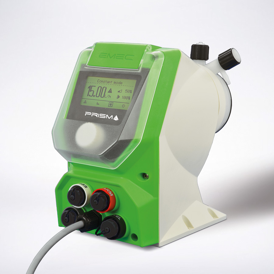 PRISMA este o pompă dozatoare cu motor stepper și diafragmă. Motorul stepper controlat de microprocesor asigură o dozare precisă și liniară.